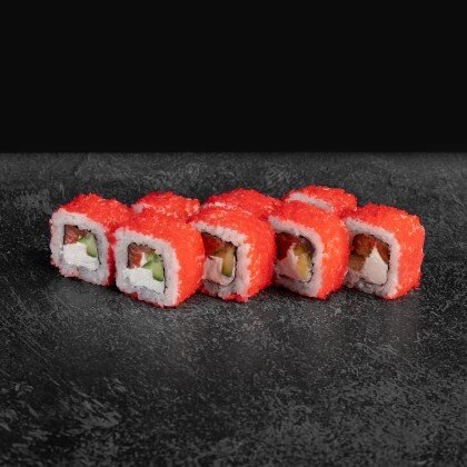 Состав: нори, рис, сыр творожный, пекинская капуста, угорь в кляре, кунжут, унаги соус. В комплекте: имбирь-1 шт, васаби-1 шт, соевый соус-1 шт.