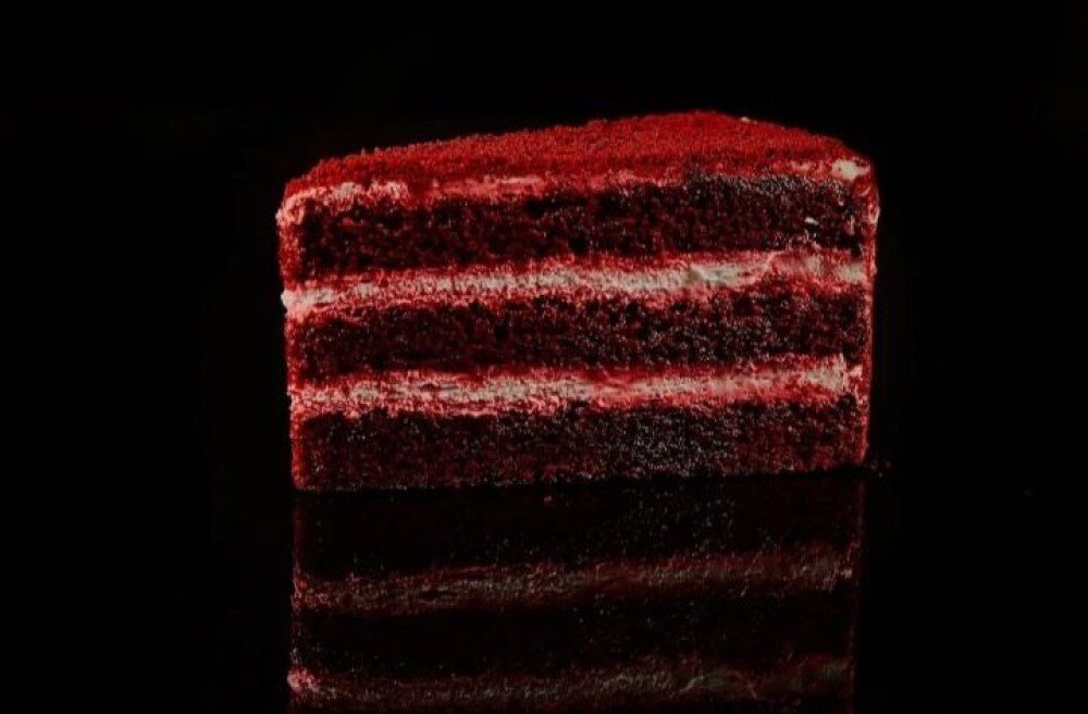 Состав: Мука, яйцо, сахар, кефир, растительное масло, разрыхлитель, какао, краситель, творожный сыр, сливки, сахарная пудра