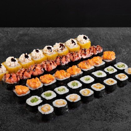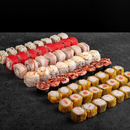 Состав: Калифорния с окунем, Оригинальный ролл Токио, Запеченный Томаго. В комплекте: Имбирь-2 шт, васаби- 2 шт, соевый соус-2 шт.