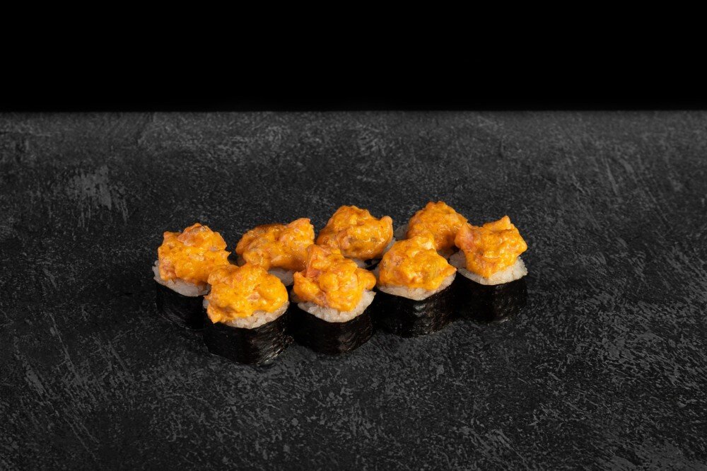 260 гр Состав: нори, рис, сыр, пекинская капуста, лосось, спайси соус