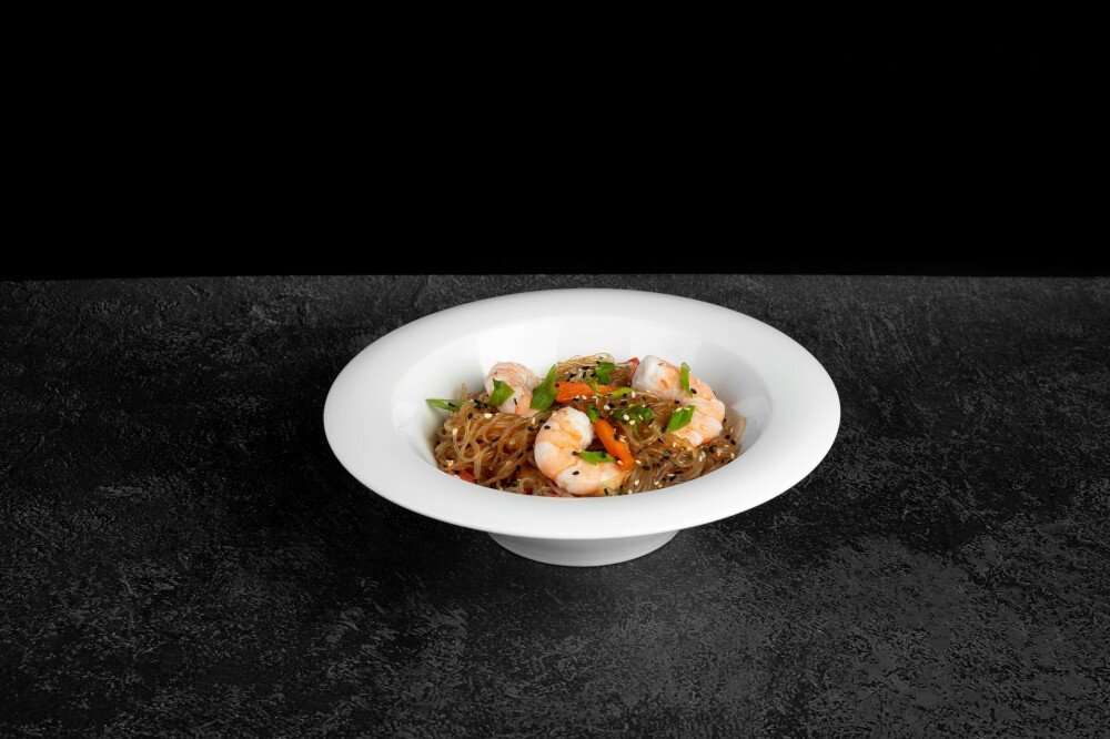Состав: перец болгарский, морковь, фасоль, фунчоза, соус терияки, кунжут, зеленый лук.