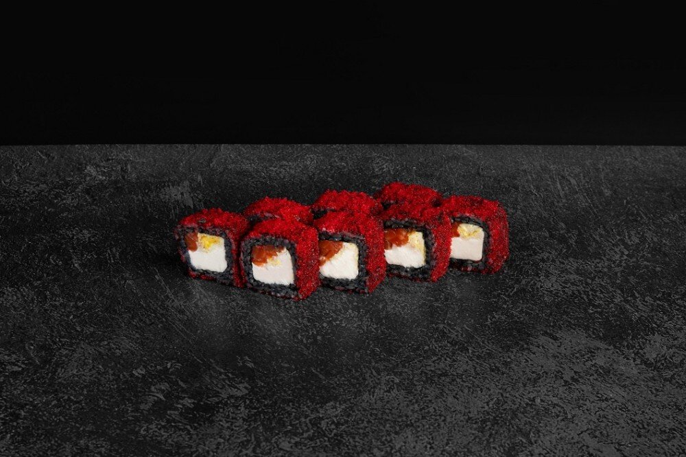 Состав: Рис черный, нори, сыр творожный, томаго, лосось, икра масаго, спайси соус. В комплекте: имбирь-1 шт, васаби-1шт, соевый соус-1 шт.