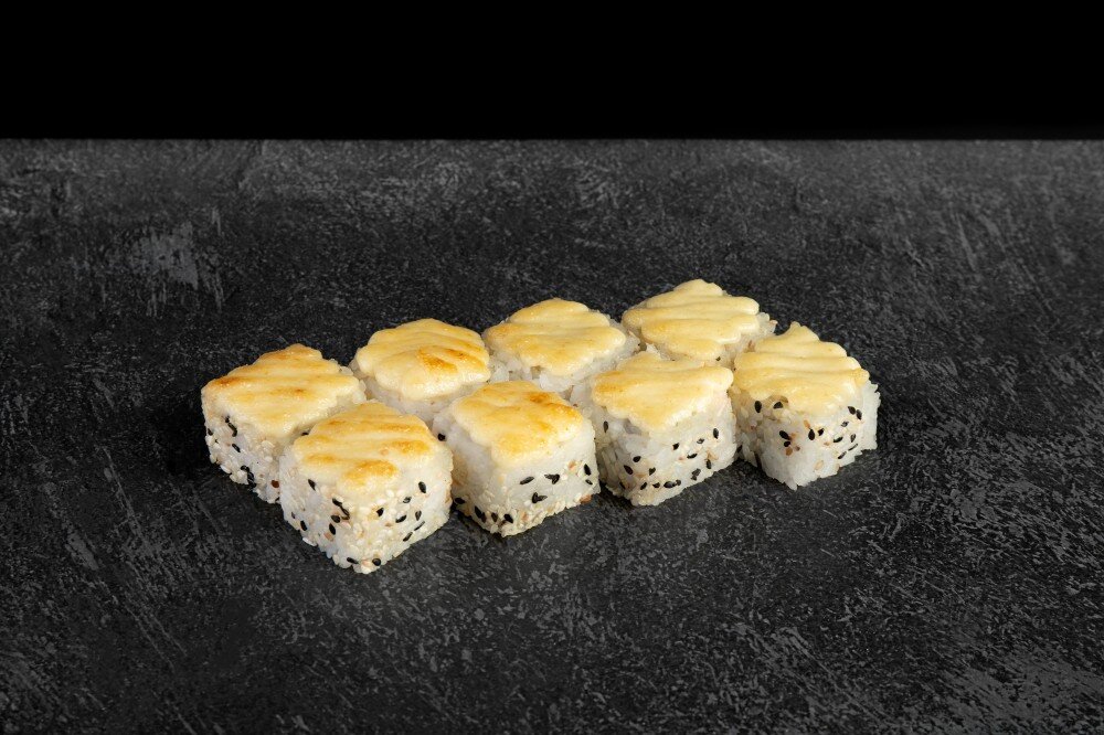 Состав: рис, нори , сыр, краб(имитация), томат, кунжут, чесночный соус. В комплекте: имбирь-1 шт, васаби-1шт, соевый соус-1 шт.