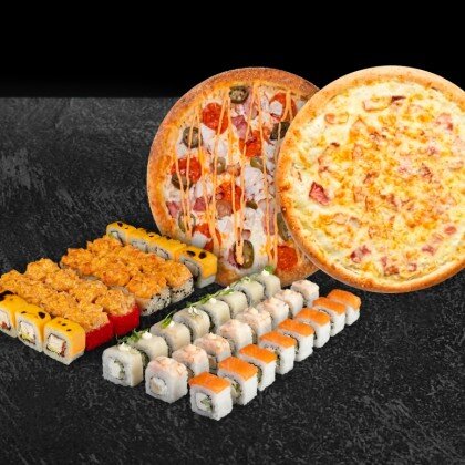 Состав: Пицца 4 Сыра, Пицца Охотничья, Пицца Бургер.