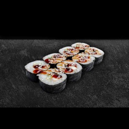 Состав: рис, нори, креветки в кляре, огурец, кунжут. В комплекте: имбирь-1 шт, васаби-1шт, соевый соус-1 шт.