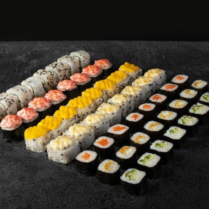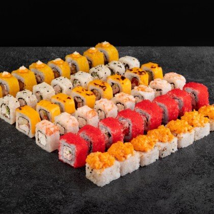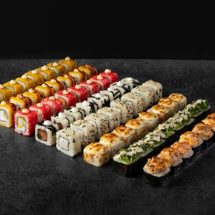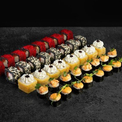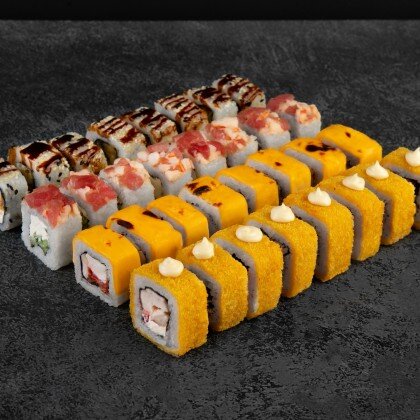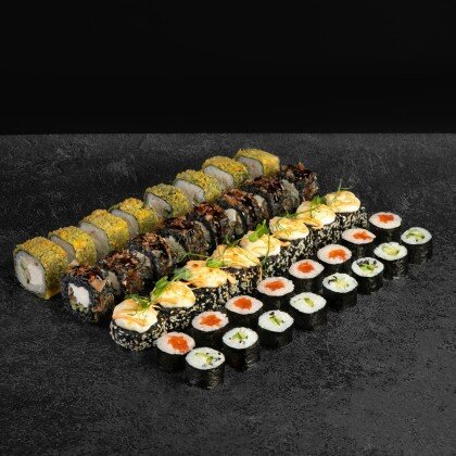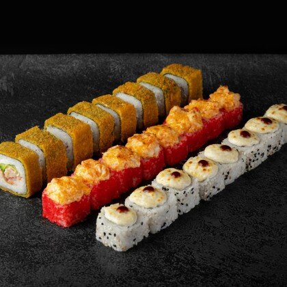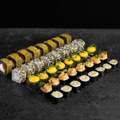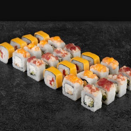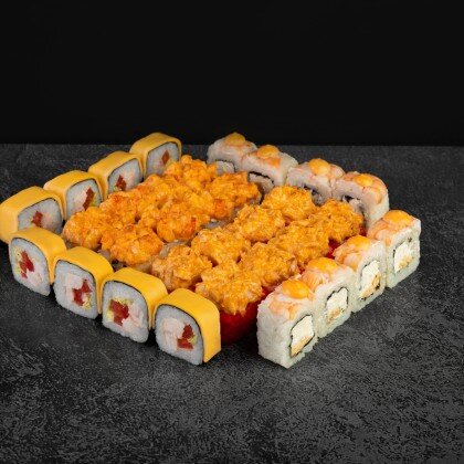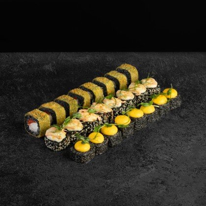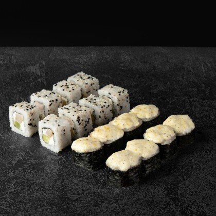 Состав: Жареный Изуми, Запеченный спайси-креветка. В комплекте: Имбирь-1шт, Васаби-1шт, Соевый соус-1шт.