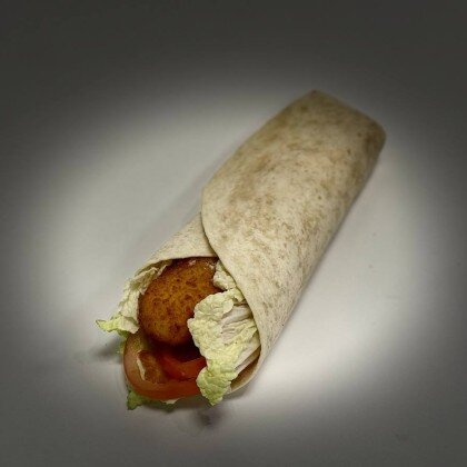 Состав: Тортилья,пекинская капуста,,сыр Чеддер,томаты,соус барбекю,котлета из сочной говядины