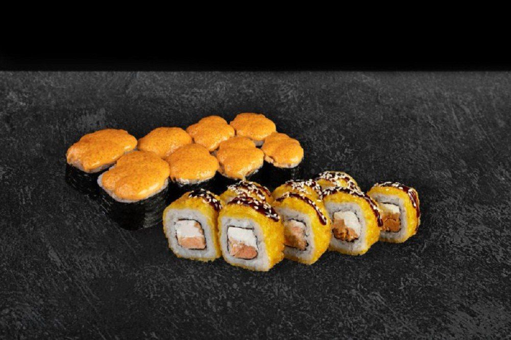 Состав: Запеченный Чили-Вили, Хот-Фиш. В комплекте: имбирь - 1 шт., соевый соус - 1 шт., васаби - 1 шт.