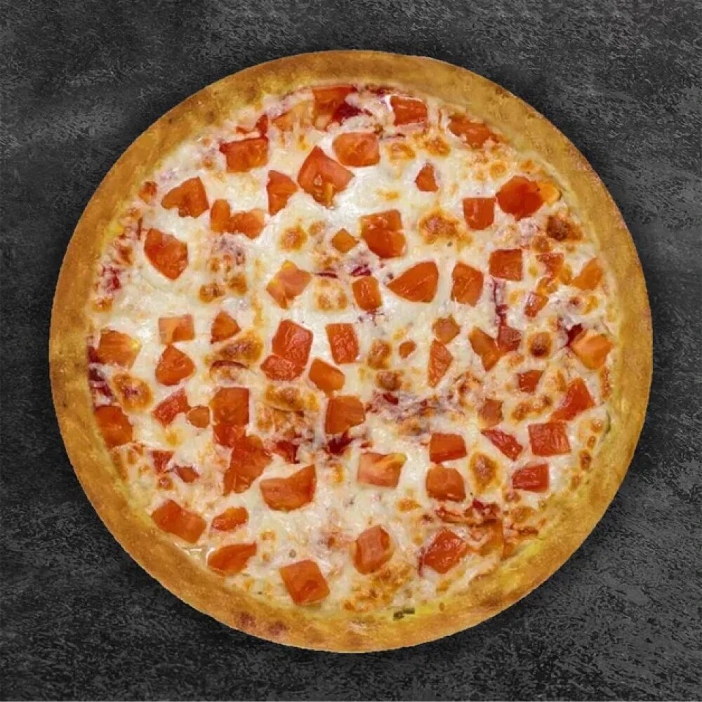 Состав: Тесто, соус красный, сыр моцарелла, томаты.