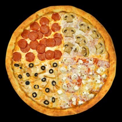 Состав: Тесто, соус томатный, сыр моцарелла, курица, бекон, колбаса пепперони, перец халапенью, соус спайси.