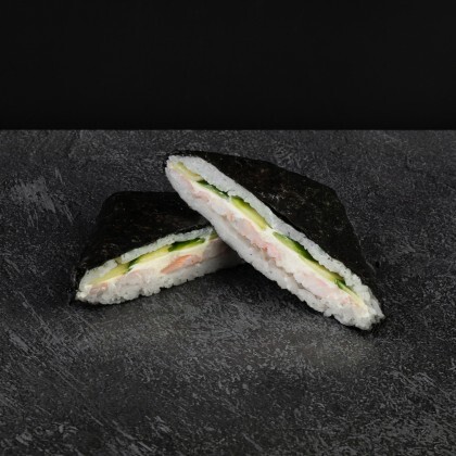Состав: Рис,нори, сыр творожный, креветки, огурец. В комплекте: имбирь-1 шт, васаби-1шт, соевый соус-1 шт.