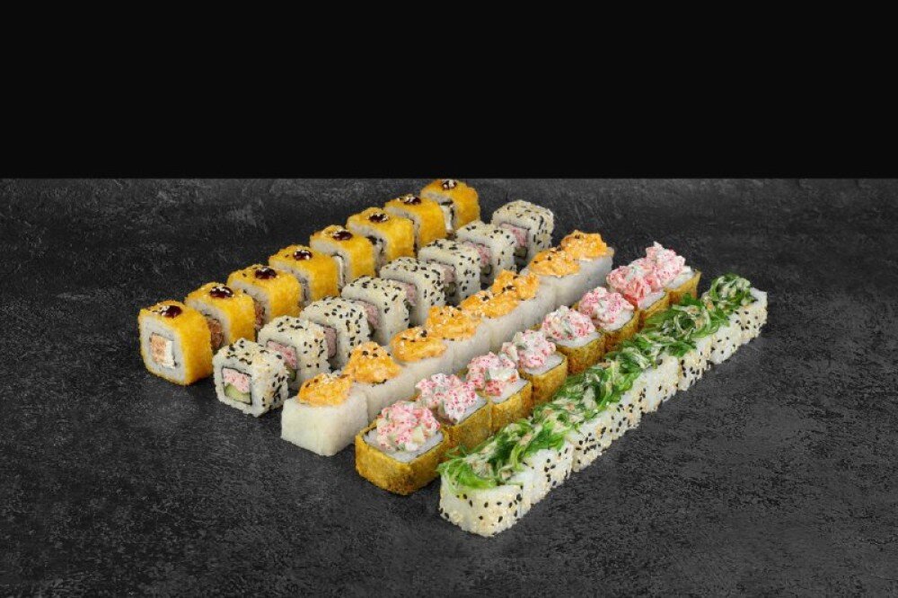Состав: Банзай, Запеченный Голд, Темпурный ролл Веган, Хот-фиш, Калифорния в кунжуте. В комплекте: имбирь-3 шт, васаби-3 шт, соевый соус-3 шт.