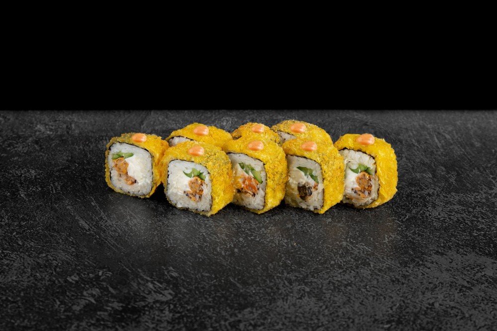 Состав: нори, рис, мидии, сыр творожный, огурец, спайси соус. В комплекте: имбирь-1 шт, васаби-1 шт, соевый соус-1 шт.