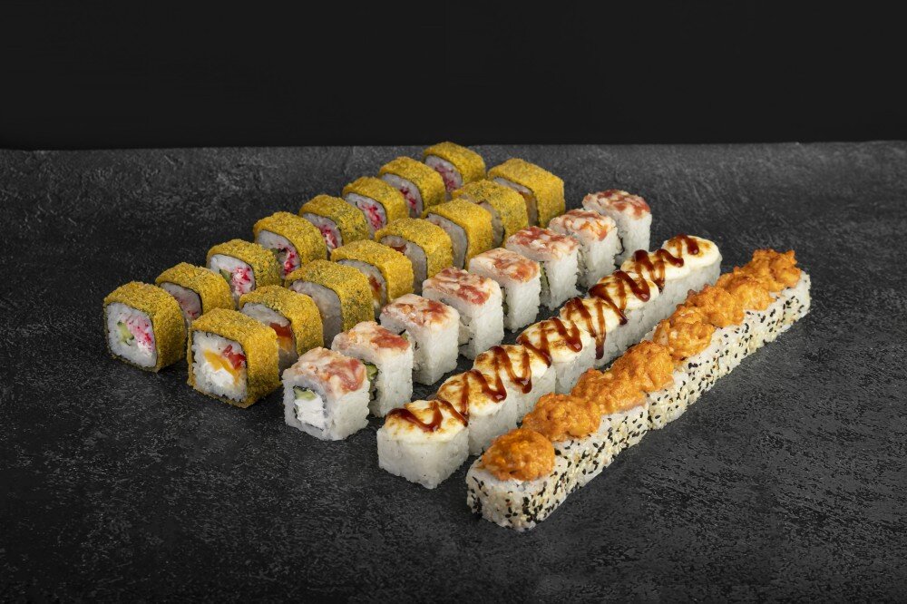 Состав: Темпурный Хил, Темпурный 4 Сыра, Запеченный тар-тар с креветками, Зебра, Запеченный Соблазн. В комплекте: имбирь-3 шт, васаби-3 шт, соевый соус-3 шт.
