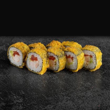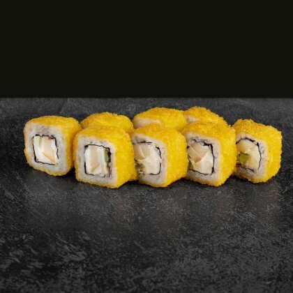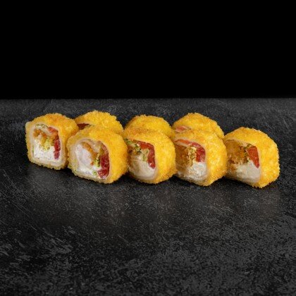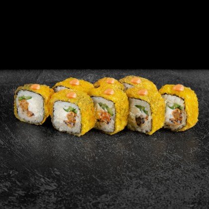 Состав: рис, нори, сыр творожный, лосось жареный в соусе терияки, кунжут, соус унаги. В комплекте: имбирь-1 шт, васаби-1шт, соевый соус-1 шт.