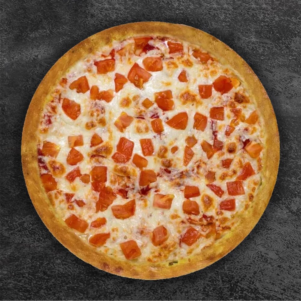 Состав: Тесто, соус красный, сыр моцарелла, томат.