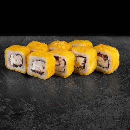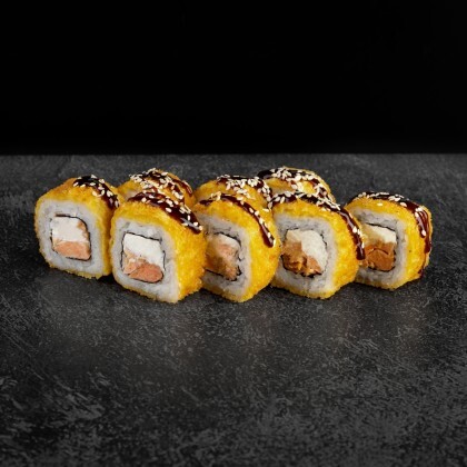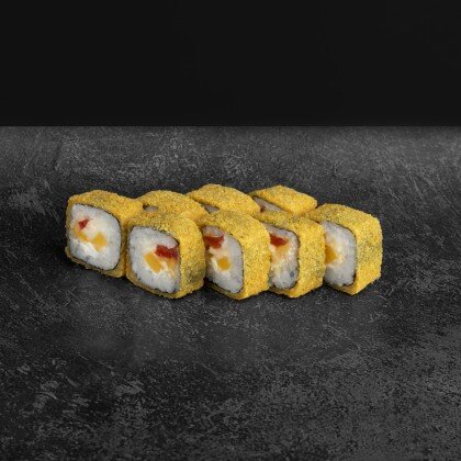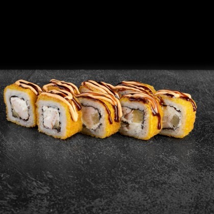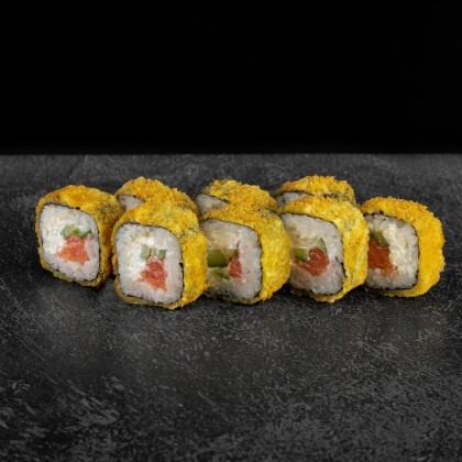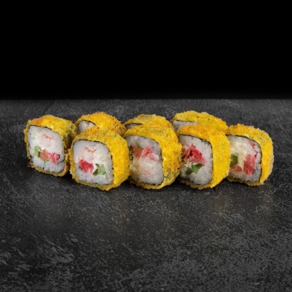 Состав: тортилья, сыр творожный , томат, пекинская капуста, курица х/к в кляре, чесночный соус. В комплекте: имбирь-1 шт, васаби-1шт, соевый соус-1 шт.
