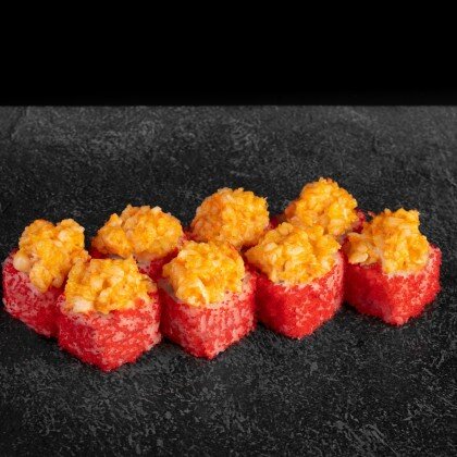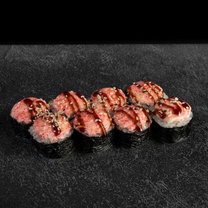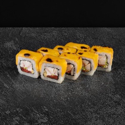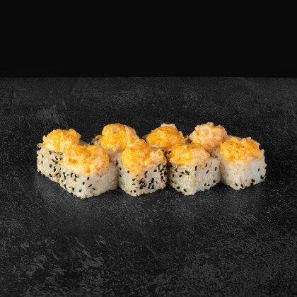 Состав: рис, нори, лосось, огурец, кунжут, сыр творожный. В комплекте: имбирь-1 шт, васаби-1шт, соевый соус-1 шт.