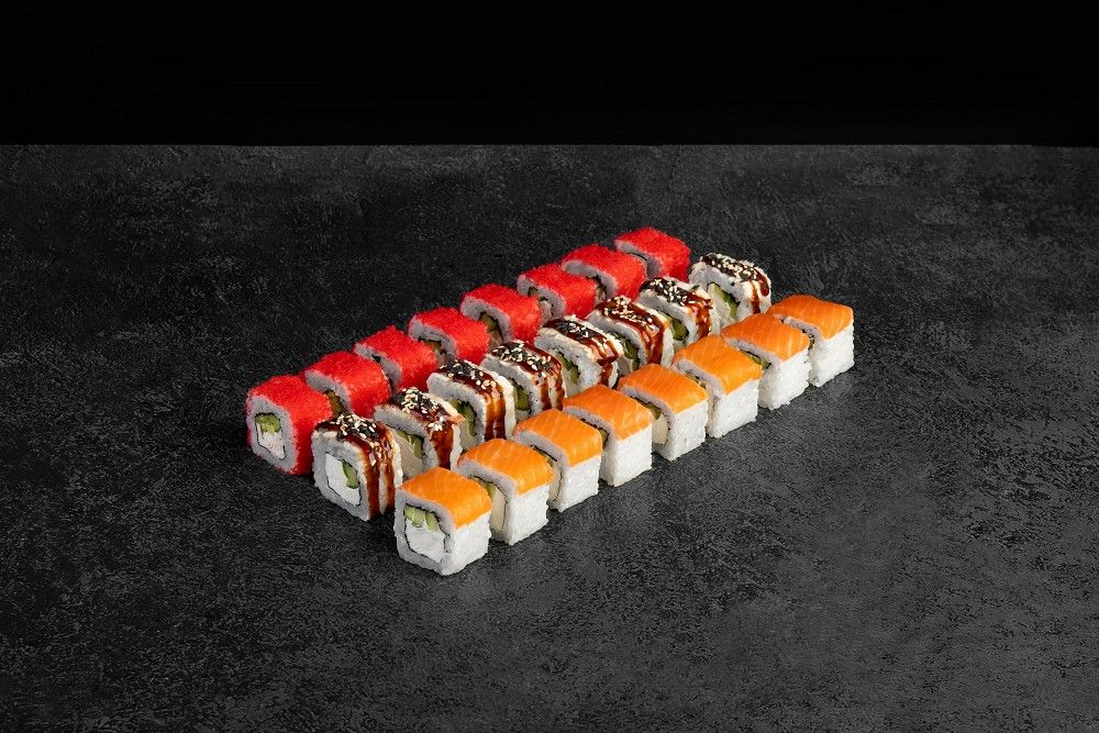Состав: Филадельфия, Канада лайт, Калифорния. В комплекте: соевый соус-2 шт, имбирь-2 шт, васаби-2 шт.