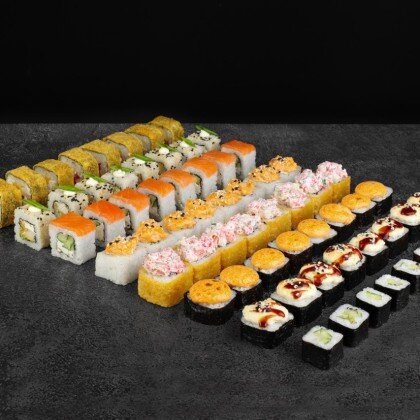 Состав: Банзай, Запеченный Голд, Темпурный ролл Веган, Хот-фиш, Калифорния в кунжуте. В комплекте: имбирь-3 шт, васаби-3 шт, соевый соус-3 шт.