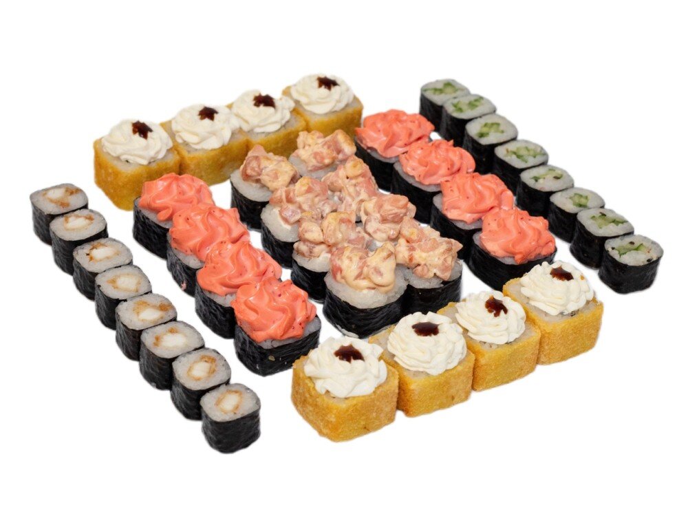 Состав: Оригинальный ролл Спайси лосось, Классический ролл с огурцом, классический ролл с окунем, Запеченный с мидиями, Темпурный ролл Оазис. В комплекте: Имбирь-2 шт, васаби- 2 шт, соевый соус-2 шт.