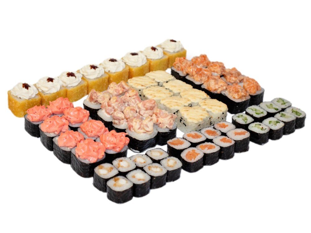Состав: Классический ролл с окунем, классический ролл с огурцом, классический ролл с лососем, Запеченный Фристайл, Запеченный с мидиями, Темпурный ролл Оазис, Запеченный ролл Сафари, Оригинальный ролл Спайси лосось.