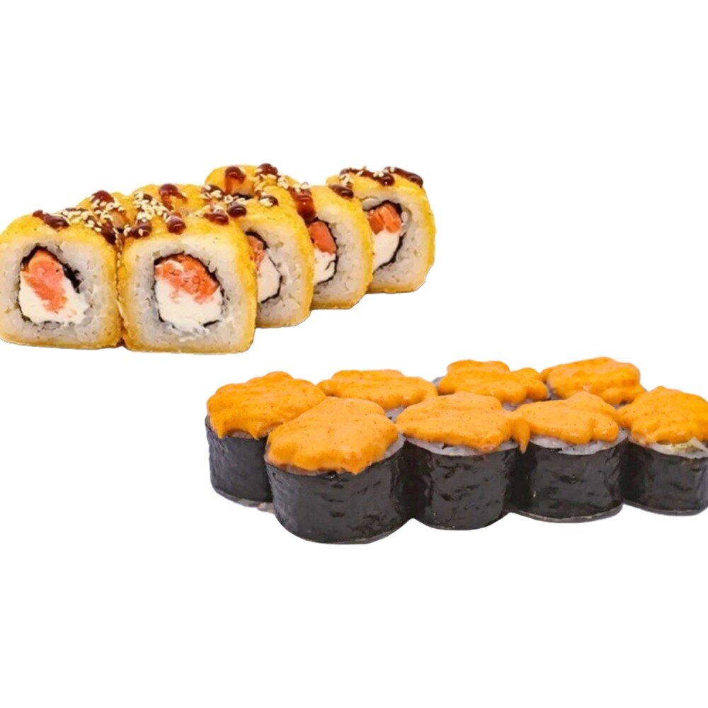 Состав: Хот-фиш, Запеченный Чили-вили. В комплекте: Имбирь-1 шт; Васаби-1 шт; Соевый соус-1 шт.