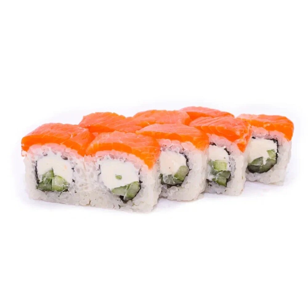 Состав: рис, нори, сыр творожный, огурец, лосось