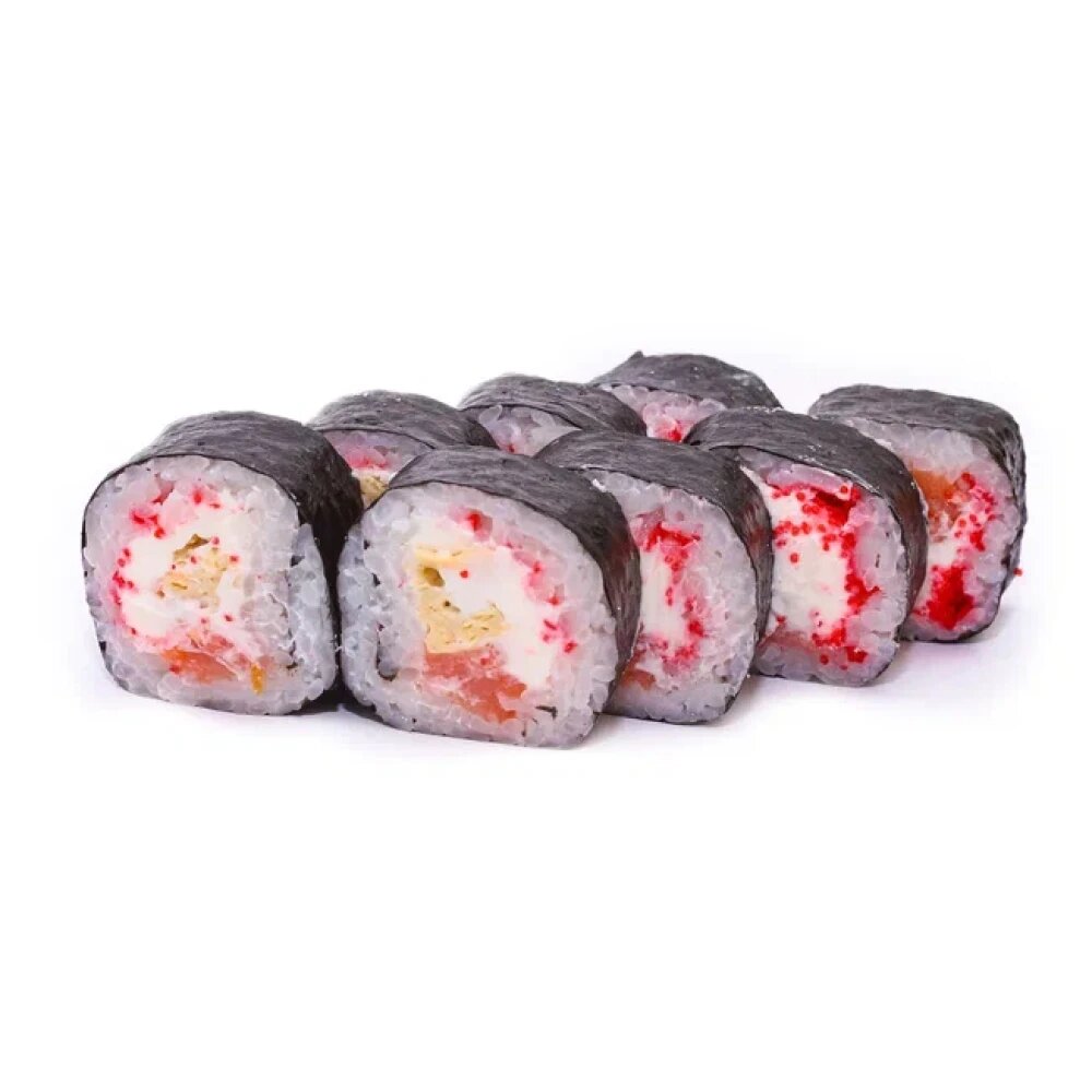 Состав: нори, рис, сыр, лосось, масаго, томаго