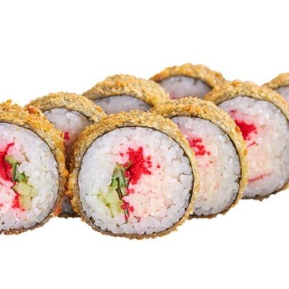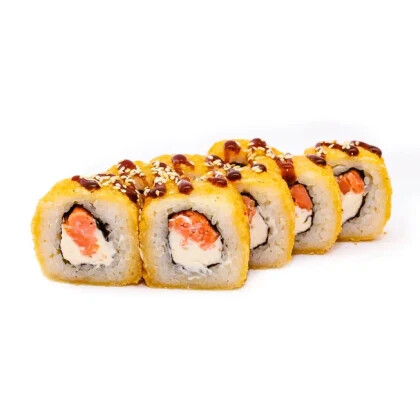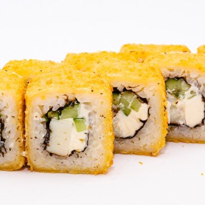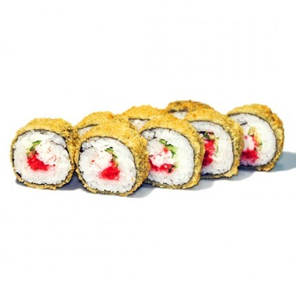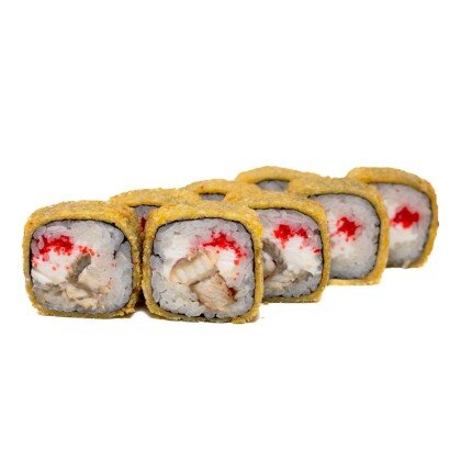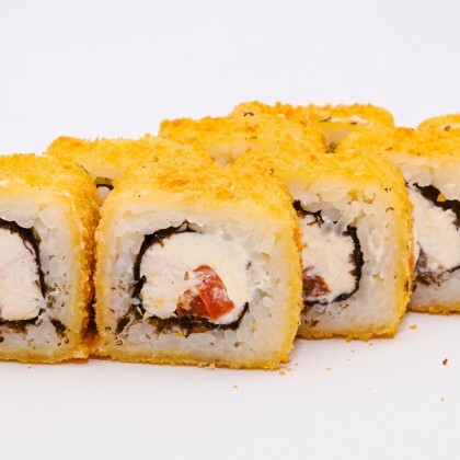Состав: рис, нори, сыр творожный, креветка, угорь, майонез, помидор, огурец, масаго