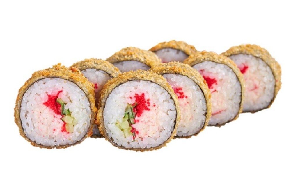 Состав: рис, нори, майонез, краб, огурец, тобико