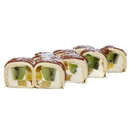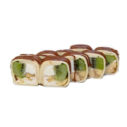 Спринг тесто, киви, апельсин, сыр, клубничный топпинг.