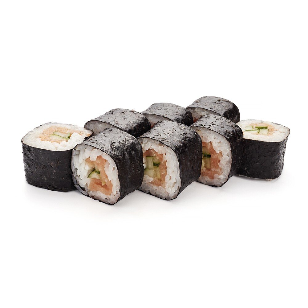 Состав: рис, нори, лосось, огурец.