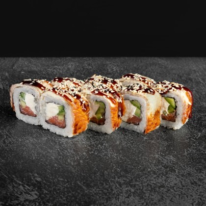 Состав: рис, нори, огурец, краб (имитация), икра масаго. В комплекте: имбирь - 1 шт., васаби - 1 шт., соевый соус - 1 шт.
