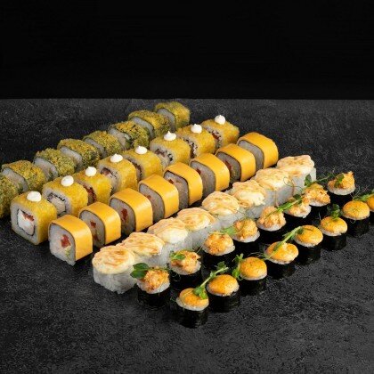 Состав: Запеченный Фристайл, Оригинальный ролл Спайси лосось, Классический ролл с огурцом, Чикен темпурный. В комплекте: Имбирь-2 шт, васаби- 2 шт, соевый соус-2 шт.