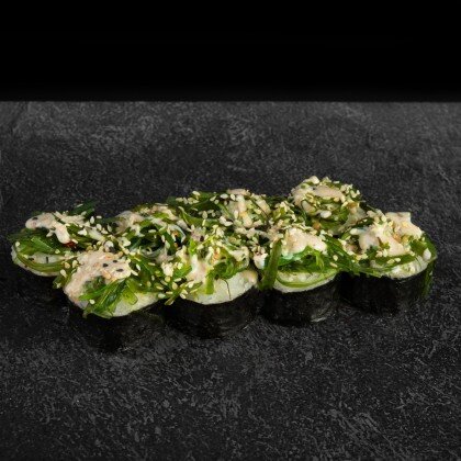 Состав: Рис, нори, сыр творожный, креветки в кляре, лосось, соус унаги, кунжут. В комплекте: имбирь-1 шт, васаби-1шт, соевый соус-1 шт.
