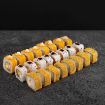Состав: Филадельфия люкс, Филадельфия лайт, Филадельфия, Дракон , Филадельфия хот, Ролл с лососем и огурцом. В комплекте: Имбирь-4 шт; Васаби-4 шт; Соевый соус-4 шт.