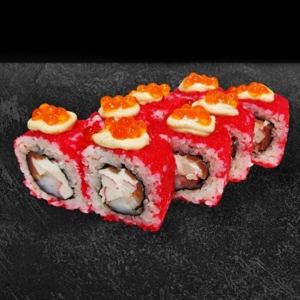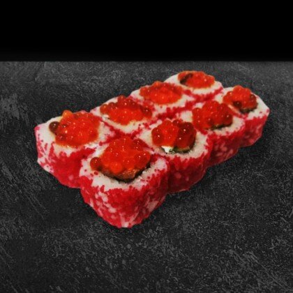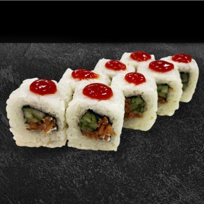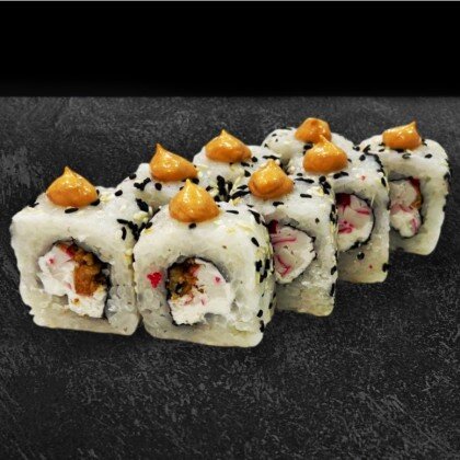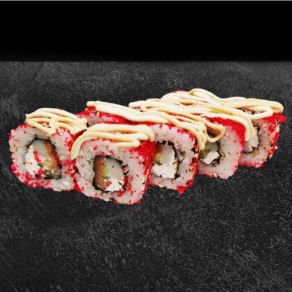 Состав: нори, рис, сыр творожный, тунец, стружка нори, белый соус, икра масаго. В комплекте: имбирь - 1 шт., васаби - 1 шт., соевый соус - 1 шт.