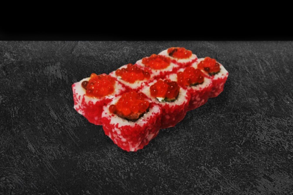 Состав: Рис, нори, сыр творожный, лосось, огурец, икра масаго, икра лосося. В комплекте: имбирь - 1 шт., васаби - 1 шт., соевый соус - 1 шт.