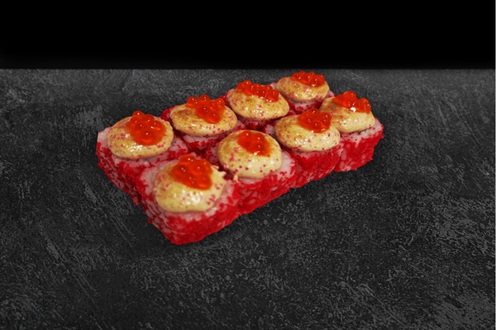 Состав: Рис, нори, снежный краб, майонез, огурец, икра масаго, соус яки, икра лосося. В комплекте: имбирь - 1 шт., васаби - 1 шт., соевый соус - 1 шт.